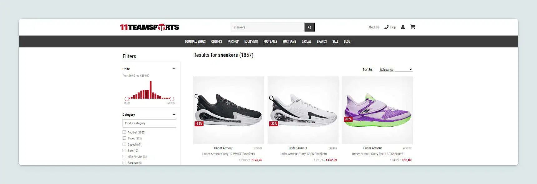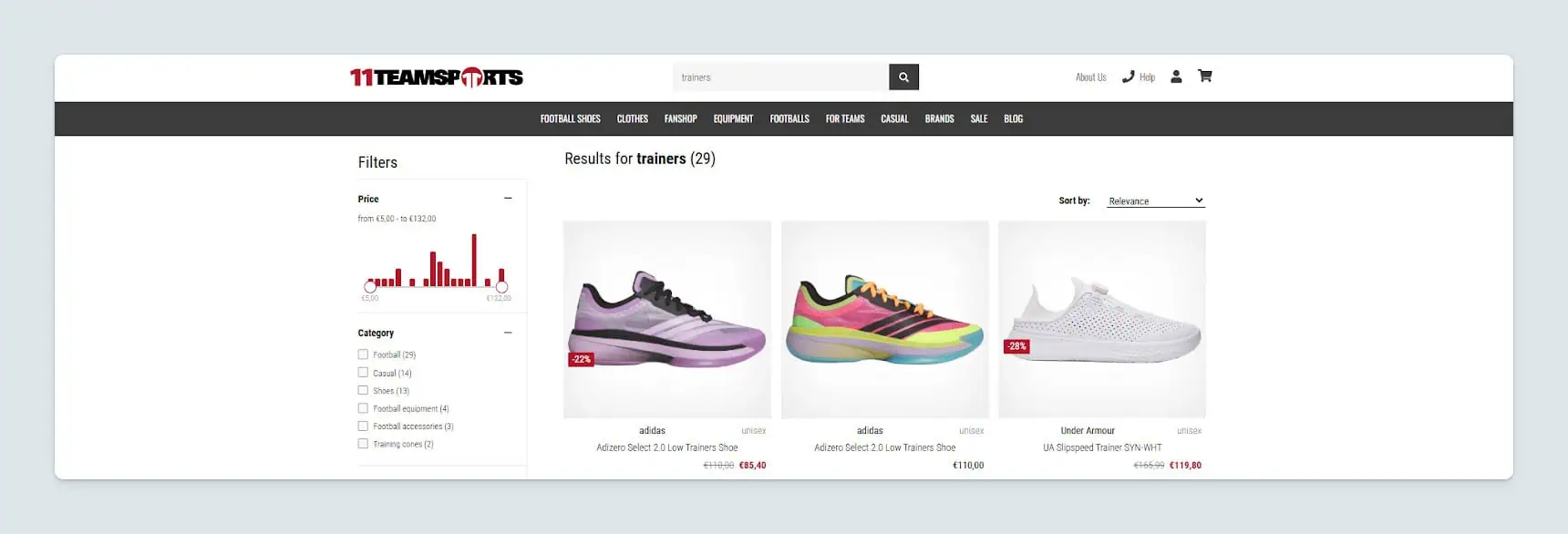 Jeśli klient szuka „sneakers”, a na Twojej stronie produkty są opisane jako „trainers”, zapytanie zwróci brak wyników. Gdy jednak zdefiniujesz relację synonimów między tymi pojęciami, oba zapytania pokażą trafne wyniki.