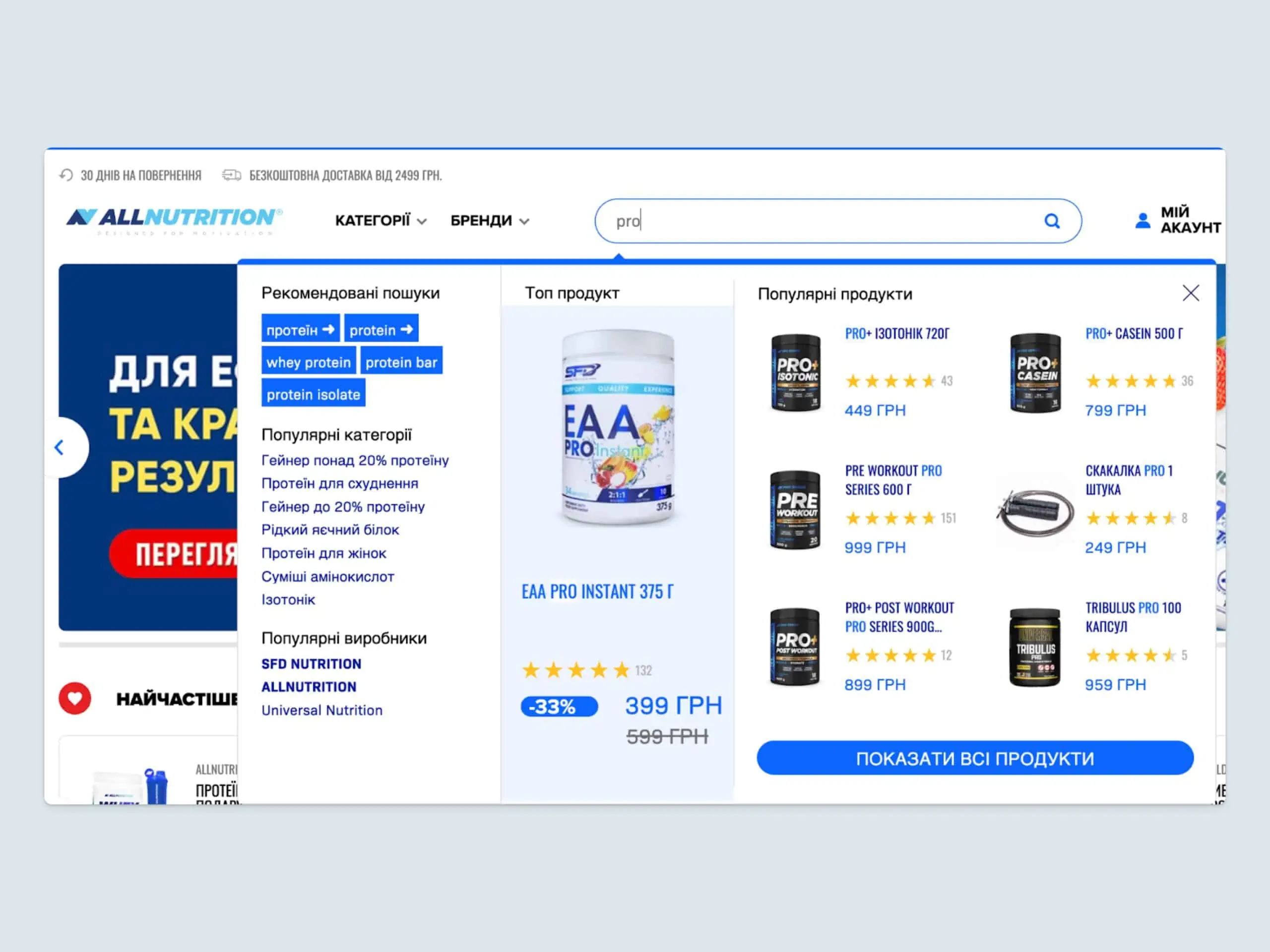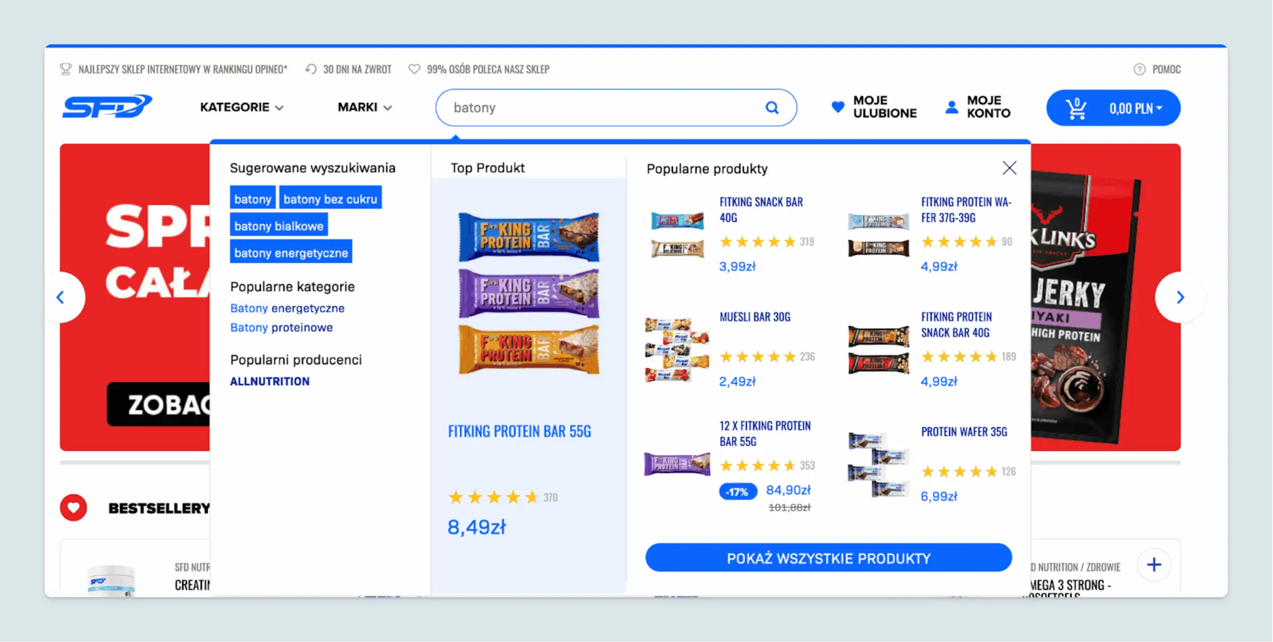 Przykładowo, w module Autocomplete promowane produkty są podświetlane na niebiesko, dzięki czemu klienci zauważają je od razu. Zespół Luigi’s Box wspierał te modyfikacje, dbając o optymalną wydajność i pozytywne doświadczenie użytkowników.